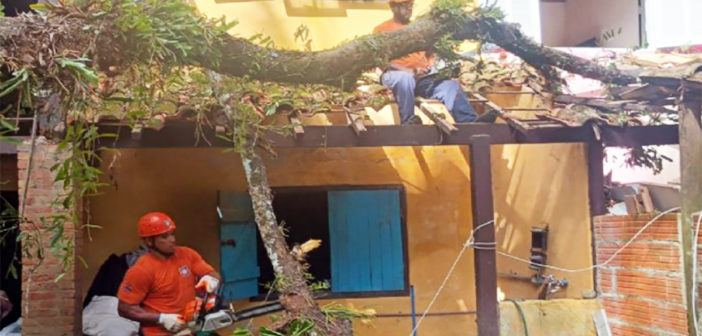 As equipes da Defesa Civil passaram dias e horas para retirar galhos e troncos de cima de casas, telhados, muros, vias públicas e fios elétricos.