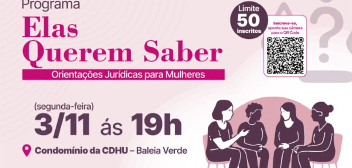Com a intenção de orientar e acolher mulheres que necessitam de assistência jurídica, a Prefeitura de São Sebastião, por meio da Secretaria de Desenvolvimento Econômico e Social (Sedes), em parceira com Subseção da Ordem dos Advogados do Brasil (OAB) de São Sebastião, através da Comissão da Mulher Advogada, abriu as inscrições para o Programa Elas Querem Saber.